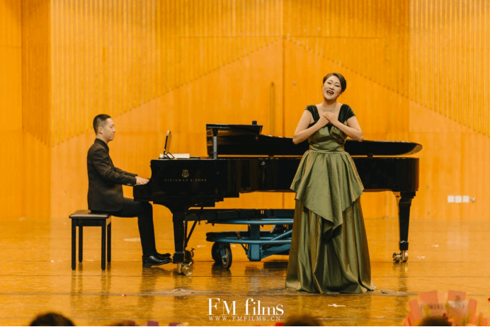 本场音乐会的曲目编排匠心独具,涵盖中华古诗词、经典歌剧选段、地方特色民歌与外国民歌等多元类型。从婉转悠长的《岁月悠悠》到深情缱绻的《为什么破碎的总是美丽》,从铿锵豪迈的《斗牛士之歌》到独具风情的《牡丹汗》,从昂扬奋进的《歌颂祖国》到充满民族韵味的《莱丽古丽》,再到《枉凝眉》的典雅婉转,层层铺陈间,阿依夏木古力老师一曲《一杯美酒》将全场气氛推向顶峰。最终,音乐会在《老师,我总是想起你》的温情旋律里,缓缓落下帷幕。